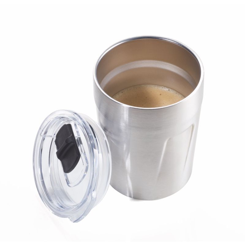 Entdecken Sie den Troika Espresso Doppio Edelstahl Isolierten Kleinen Thermo Becher – Ihr perfekter Begleiter für Espresso, Kaffee und andere heiße Getränke. Dank der Doppelwand-Vakuumisolierung hält dieser Becher Ihre Getränke heiß, während er angenehm zu halten ist. Mit einem Fassungsvermögen von 160 ml (ca. 5.4 oz) ist er so konzipiert, dass er in standardmäßige Kaffeevollautomaten und Becherhalter passt. Der Kunststoffdeckel ist BPA-frei und verfügt über eine Schiebeöffnung und eine Gummiversiegelung, die ihn auslaufsicher macht. Hergestellt aus langlebigem 201 und 304 Edelstahl, ist es eine umweltfreundliche Alternative zu Einweg-Pappbechern. Ideal für einen doppelten Espresso oder eine kurze Pause mit Ihrem Lieblingsheißgetränk.